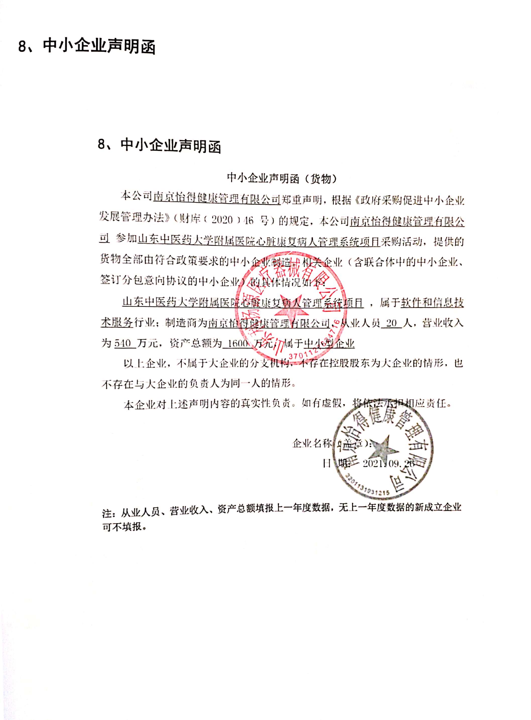 | 二、采购项目名称:山东中医药大学附属医院心脏康复病人管理系统项目 |